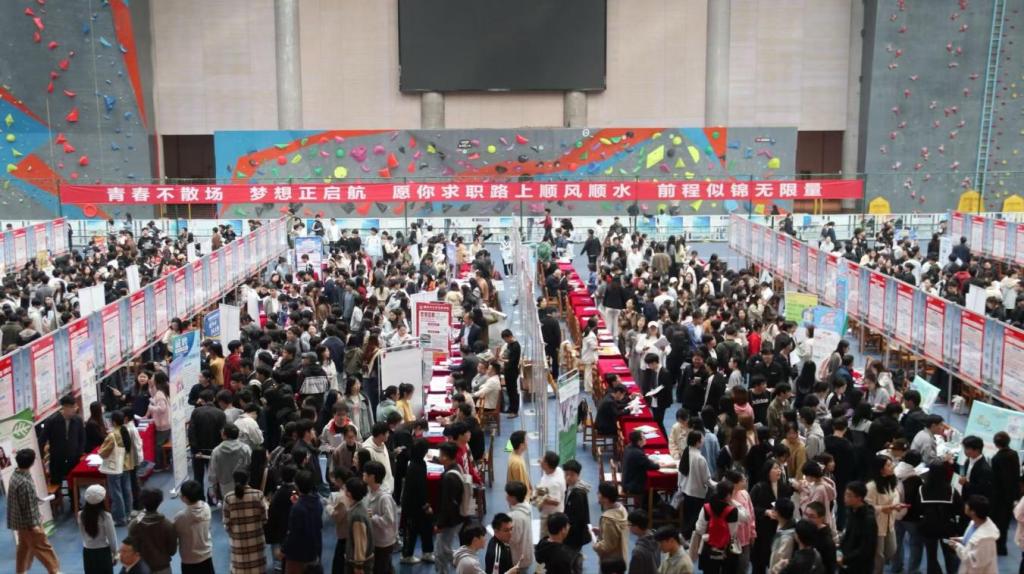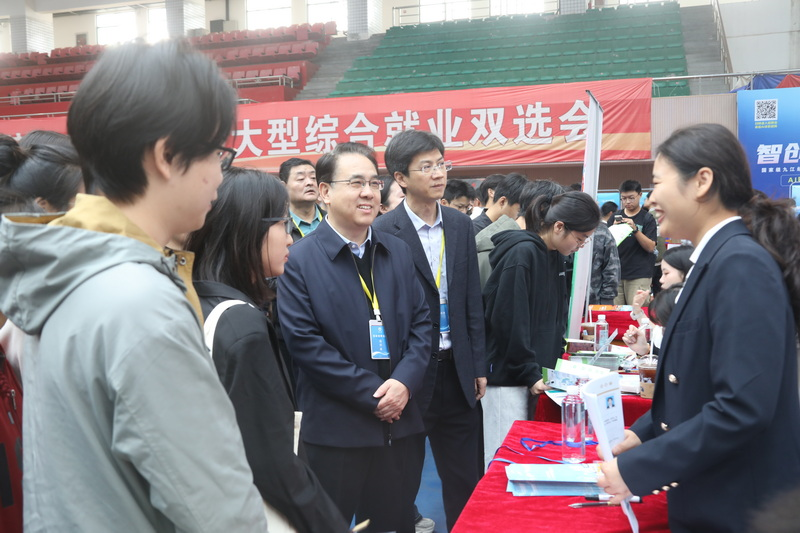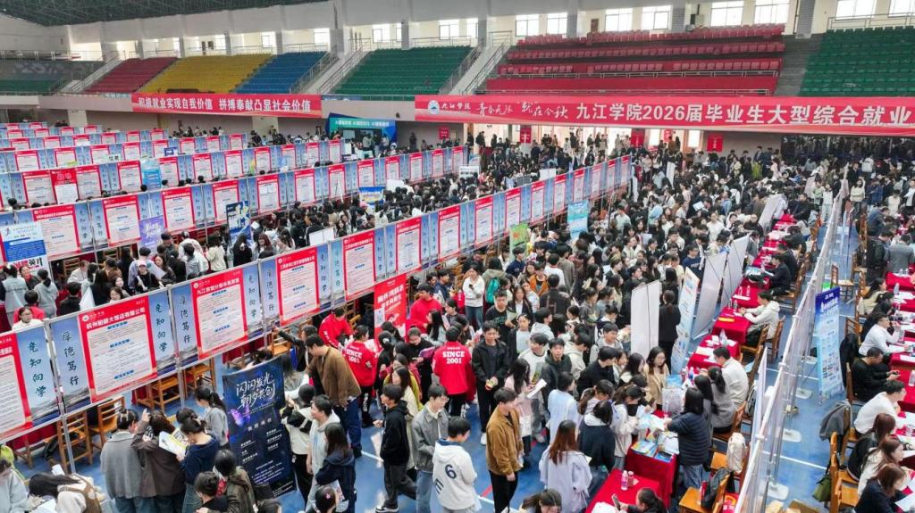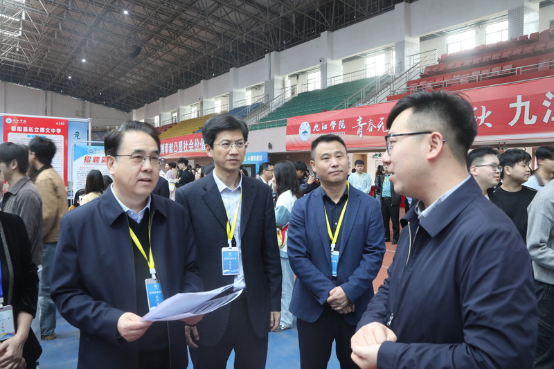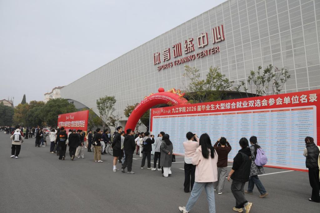 秋风送爽,才聚校园。为全面落实党中央、国务院、教育部、江西省关于高校毕业生就业工作的决策部署,促进学校毕业生高质量充分就业,11月1日,九江学院2026届毕业生大型综合就业双选会在丹枫园体育训练中心成功举办。九江学院党委书记李明斌,党委委员、副校长查振华来到现场指导,亲切看望师生和企业代表。